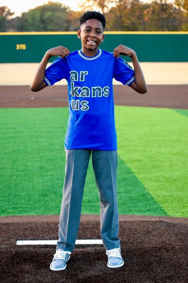 Indulge in the luxurious comfort of this high-quality crewneck T-SHIRT with an embroidered gridline State patch of "Arkansas" located on the left sleeve!